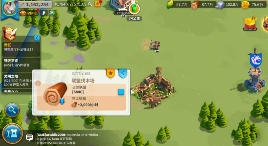 占领领地是联盟发展的重要环节,需要满足特定条件并采取系统化的策略。联盟领地资源田必须通过建造旗子来占领,只有位于自己领地范围内的联盟资源田才会归属于玩家。这些资源田会持续自动生产联盟资源,包括粟米、木材、石头和金币等,每小时产量从1000到2000不等。占领后,玩家在领地内采集野外资源田时,约10%的采集量会额外加成至联盟资源,这部分资源不会影响玩家原有的采集量。