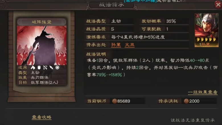 装备特技方面,青龙偃月刀的专属特技武圣能额外提升5%自带战法发动率,是可遇不可求的质变属性。平民玩家若缺乏核心S级战法,可采用A级轻勇飞燕、不辱使命等瞬发战法过渡,配合落凤等控制技能维持基础战力。需注意关羽发挥存在概率波动,合理管理预期才能最大化其战场价值。