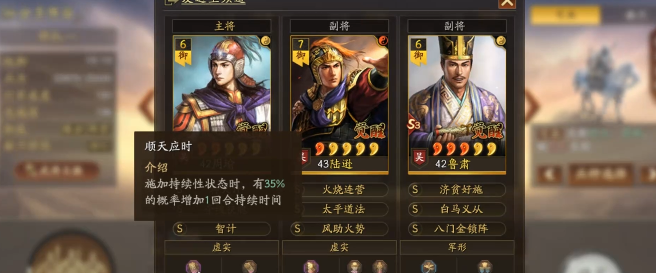 陆逊作为东吴核心智将,在战场上以火攻闻名,战法搭配直接影响输出上限。优先选择太平道法+士别三日组合,太平道法能显著提升主动战法发动概率,配合陆逊自带战法火烧连营的高触发率,形成稳定爆发;士别三日则提供前三回合规避效果,弥补陆逊生存短板的同时第四回合还能补充爆发伤害。这套组合兼顾输出与自保,是目前主流选择。