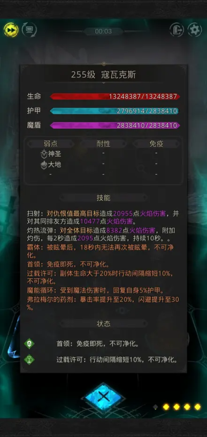 秘境7作为游戏中的高难度副本,核心通关要点在于合理利用魔力核心机制与阵容搭配。永望需达到月阶以上以承受关底BOSS的火焰伤害,主C位推荐千面或夜莺等具备自愈能力的角色,练度要求单月210级即可。关键策略在于仅使用30层前小巷迷宫获得的魔力核心,该选择会使全员回复魔盾并使BOSS魔盾失效(物盾翻倍),从而让暗语的致盲技能稳定生效。