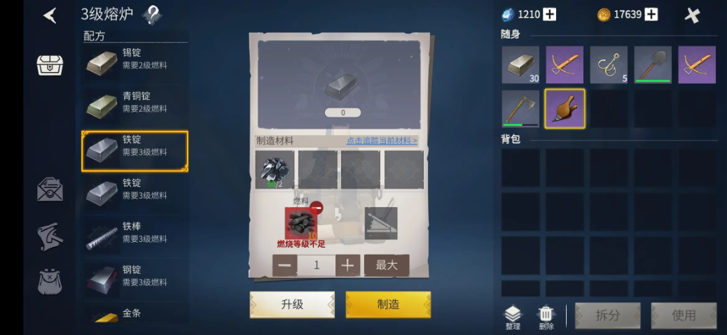 鼓风机的使用技巧在于合理规划燃料管理。由于二级燃料经鼓风机强化后效果等同于三级燃料,玩家可优先消耗存量较大的二级木炭或煤炭,节省高级资源用于其他需求。这一策略尤其适合中后期大规模建造或装备锻造场景。若玩家已拥有鼓风机,建议在熔炉界面中同时放入燃料和待加工材料,以最大化生产效率。