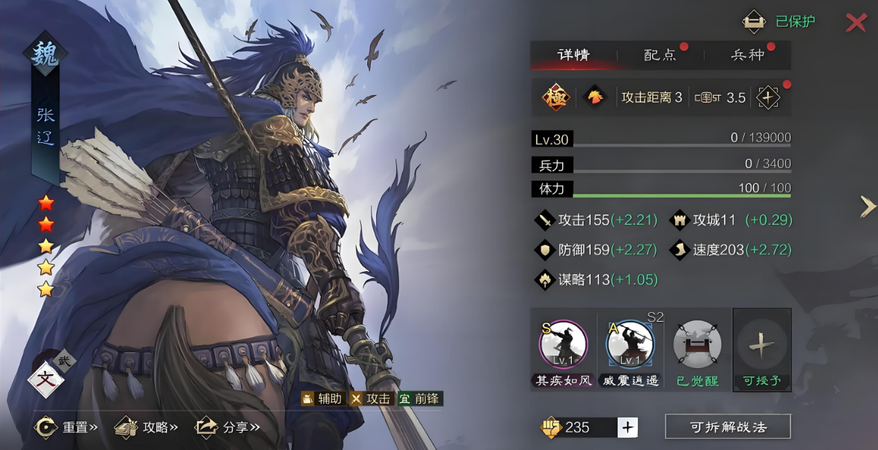 转弓骑兵可以带弓兵战法,整体更均衡;转轻骑兵则更暴力,前两回合还有额外伤害加成。个人建议如果你有闲置的强力弓兵战法就转弓骑,否则无脑轻骑。特性推荐乱阵和侧击,一个打步兵更疼,一个克制骑兵,都是实打实的伤害提升。装备优先选加攻击和速度的,让他出手更快伤害更高。