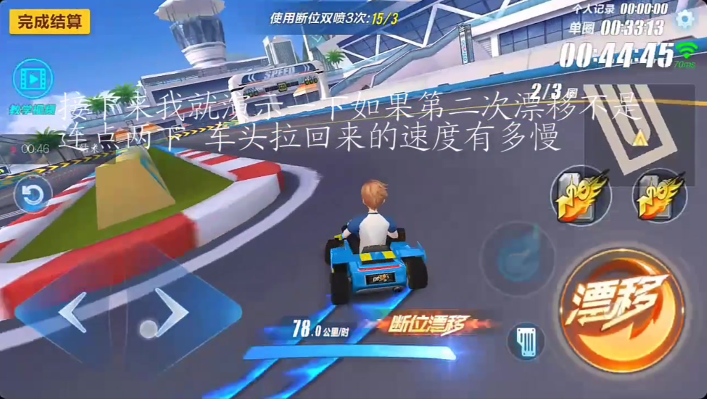 快速回调车头是过弯的关键,当车头已经通过弯道时,迅速按住反方向键配合漂移键拉车头,这样可以减少撞墙概率,还能更快进入下一个入弯位。漂移过程中车速会降低,要学会在拉车头前提前释放氮气,利用加速带动车身快速完成转向。如果是大于30度的单弯道,反方向修正最为稳妥,急弯则可以轻点刹车配合反方向操作。