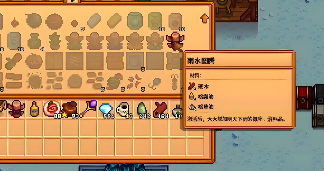春季雨天并非每天都会出现,玩家可以提前制作求雨图腾来确保次日为雨天。到达矿井外湖泊后,尽量选择靠近湖中央的位置甩杆,因为鱼王的活动范围较大。需每天只能尝试钓一次鱼王,如果失败,建议直接读档重来以节省时间。