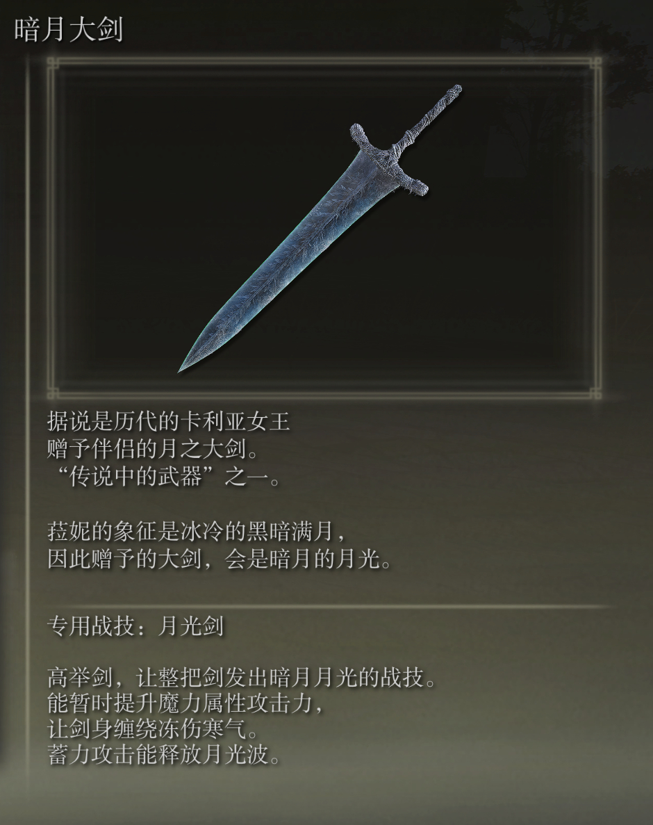 光是基础类型就涵盖长剑、大剑、斧锤、长矛、弓箭、法杖等几十种大类,每一类下还有数十种细分武器。这些武器散落在辽阔的交界地各处,有的藏在宝箱里,有的需要击败特定敌人掉落,还有些得完成NPC任务才能拿到。想要全收集的话,可得做好长期探索的准备。传说级武器是最值得关注的稀有装备,比如暗月大剑、黄金律法大剑这类自带华丽特效和强力战技的武器。它们通常与主线或支线剧情深度绑定,比如暗月大剑必须完成菈妮的整个任务线,而遗迹大剑则需要先击败碎星拉塔恩才能触发后续事件。这些武器不仅强度出众,背后的故事也充满史诗感,是收藏控不可错过的目标。