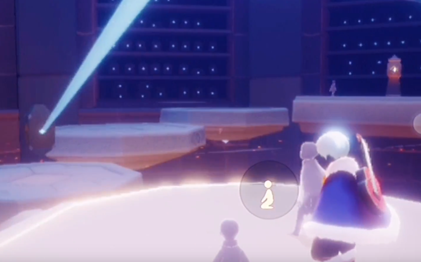进门后向左转能看到两根大柱子,绕到第二根柱子背后就能找到气功高人先祖。这位先祖动作超有意思,一级动作是双手推空气,升级后会有发光特效。记得准备好足够爱心和白蜡烛,因为最贵的四级动作要10根白蜡烛呢。如果找不到人帮忙开门,可以试着在非高峰时段练习遁地技巧,选择门右侧台阶角落更容易成功。
