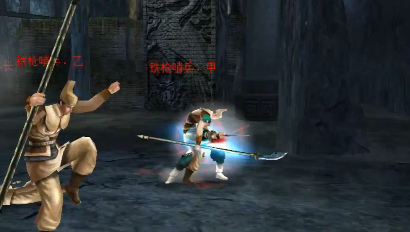 第二关钟乳洞的核心挑战在于应对三名使用长枪的哨兵。初始装备为匕首和暗器,匕首因攻速优势在对抗长枪时较为灵活,推荐使用→A↑↑A连招快速压制敌人。需优先击杀左侧单独行动的哨兵,避免其残血后逃向哨兵长引发三人群攻。击败首个敌人后可拾取长枪,利用↑A→←A↓↓↑A连招扩大攻击范围。场景中的石柱被破坏后可能掉落补给,但需注意倒塌方向以免误伤。