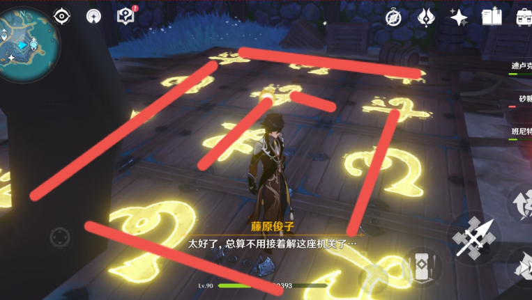 清籁旧宝任务的触发位于清籁岛越石村附近,需要先击败围攻NPC藤原俊子的丘丘人。击败魔物后与藤原俊子对话可获得宝图,这是后续解谜的关键道具。任务会引导玩家前往附近的小木屋,屋外有三个刻有特殊符号的地板机关,需要按照特定顺序踩踏激活。