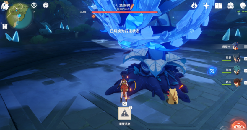 打的时候要注意,深赤之石的效果离开一定范围就会消失,所以每次捡到石头要立刻跑去打冰块。每颗树旁边固定有四块深赤之石,不用急着找别的。雪山环境寒冷,角色会持续掉血,靠近篝火、传送锚点或者七天神像可以缓解。如果发现严寒值快满了,赶紧找温暖仙灵或者火堆,别让角色冻趴下。