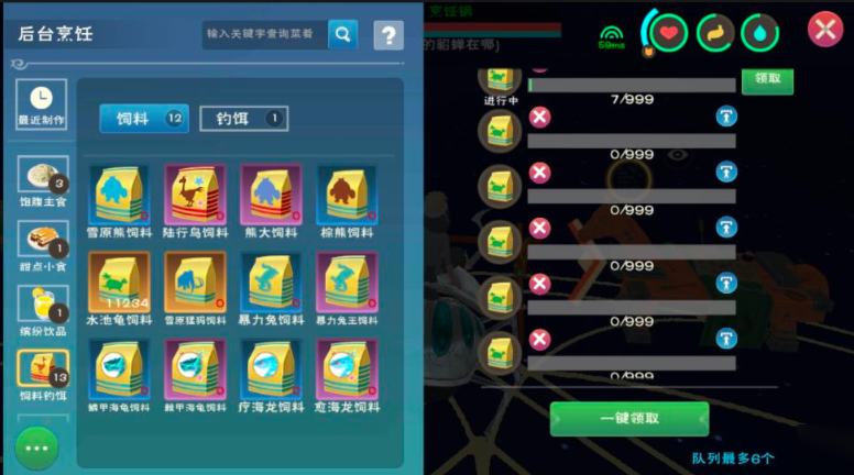 驯服水龟的话,记得准备好它的专属饲料——三文鱼和鲶鱼混合制作的饲料包。这两种鱼可以通过钓鱼获取,三文鱼喜欢出现在冰封的河水区域,用蚯蚓当饵料更容易钓到;鲶鱼则常见于黄沙河流,建议用大蚯蚓作诱饵。把这两种鱼放进烹饪锅就能合成水龟饲料,记得多准备几包,至少12包才够用。