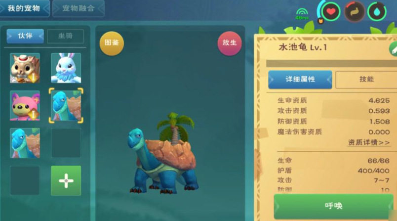 水龟通常出没在各大陆的海滩或水池边,属于30级可捕捉的被动型生物。找到它后别急着喂食,先用武器把它的血量打到一半以下,注意别直接打死。接着换木棒敲晕它,等它头上冒出爱心符号时,就可以投喂准备好的饲料了。喂食过程中保持耐心,直到驯服进度条满就能用捕捉器收服。