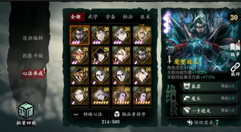 心法方面优先选择魔堡故人、芳华邪后这类能激活羁绊效果的核心心法,它们不仅能减少套装需求件数,还能提供额外的攻击加成和生存保障。永铭之志和月堡女王也是不错的选择,一个能增强控制能力,另一个可以提升破甲效率。记得把心法铸魂属性洗成暴击率或冷却缩减,这样能让技能循环更流畅。装备词条优先选攻击百分比、暴击伤害和防御穿透,武器强化至少+5起步,别把资源浪费在次要属性上。
