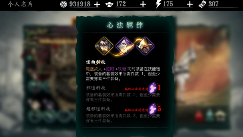 魔堡故人同样是必备选择,作为T0级心法,它能大幅提升基础攻击力,并且削弱敌人护甲。荆棘试炼中输出窗口期很短,魔堡故人提供的爆发加成能让你在2秒安全期内打出致命伤害。记得搭配蛇眼、铁诞激活羁绊效果,减少套装需求件数,这样能腾出更多位置堆生存属性。