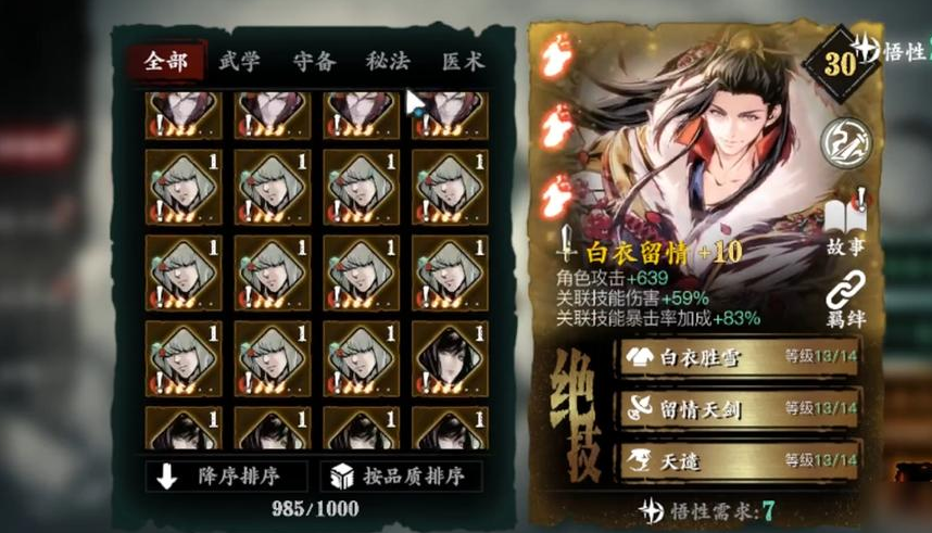 守备类心法建议选白衣留情,金色品质容易培养,提供稳定的防御和减伤。荆棘试炼中容错率很重要,特别是面对湮灭难度时,怪物反伤系数极高,稍微失误就可能暴毙。白衣留情的免伤效果能让你扛住意外伤害,给操作留出调整空间。