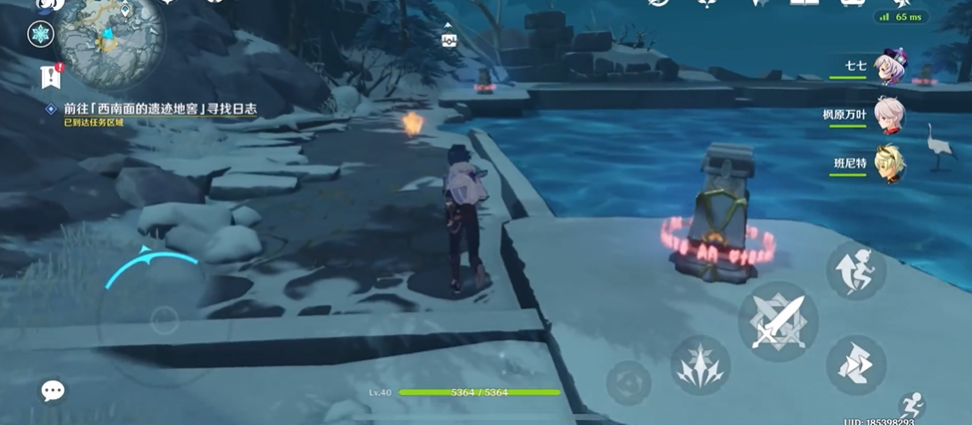 仙灵归位后会点亮底座,解锁中央的限时挑战。建议提前准备好火系角色和奶妈,因为挑战会刷新四波怪物,最后一波有三只冰深渊法师,容易因寒冷值掉血。完成挑战后屏障消失,记得捡取场地边缘的深赤之石,用它攻击碎片就能解冻。