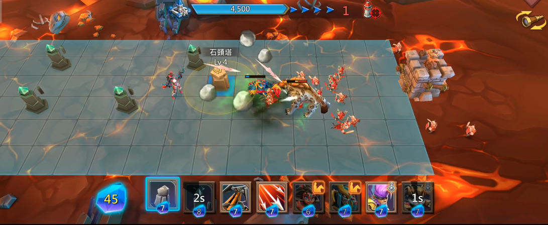 优先击杀携带控制技能的萨满单位。防御塔布局采用三线分层策略:首排魔像塔吸收伤害,中排雷电塔提供范围输出,后排炮车定点清除敌方炮台。英雄站位需保持分散,避免被范围技能团灭,同时保留1-2个空位随时补放防御塔。当敌方首领单位出现时,集中使用熔岩塔和火箭技能进行爆发输出。