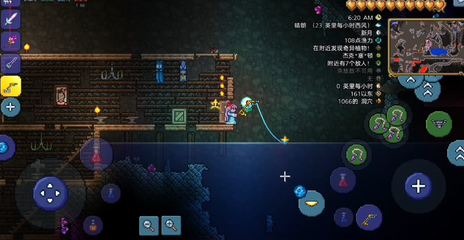 地形和时间对特殊鱼的出现至关重要。妖精鱼需在困难模式的神圣之地地表水域钓取,且仅在渔夫发布任务时出现;恶魔鱼需在地表腐化/猩红区域;蝙蝠鱼则需在地下洞穴水域夜间垂钓。水域大小需至少18×18格,过小会降低渔力。血月期间可钓取血雨弓等特殊武器,而岩浆钓鱼需确保水域深度足够且使用防熔岩装备。