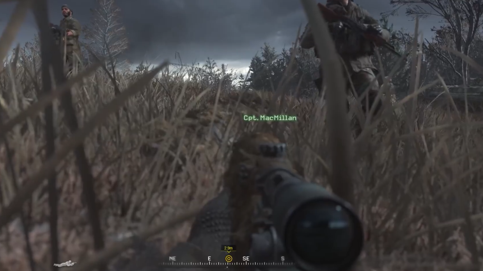 双狙往事(All Ghillied Up)是使命召唤4:现代战争中最具标志性的关卡之一,任务背景设定在切尔诺贝利废墟,玩家将扮演年轻时的普莱斯上尉,与麦克米兰上尉共同执行一项高风险的刺杀任务。关卡分为潜行与狙击两个阶段,核心难点在于隐蔽行动与精准射击的结合。任务要求玩家全程保持低调,利用吉利服与环境掩体避开巡逻敌军,同时在关键时刻完成一击必杀的狙击操作。