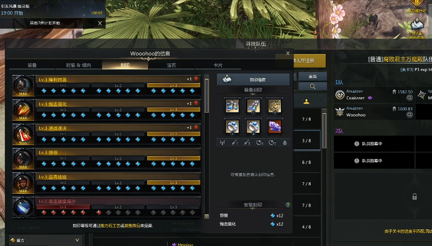 职业铭刻的选择直接影响532配装效果。以战士系职业为例,毁灭者需侧重防御性铭刻如重甲穿戴,而督军则可选择战斗姿态搭配怨恨或精气吸收。输出型职业如女巫则需区分魔法点燃与魔法回流流派,前者依赖专长属性,后者侧重暴击与迅速属性。辅助职业如圣骑士需优先保证祝福光环与觉醒铭刻的满级效果,再考虑补充重甲穿戴等生存向铭刻。