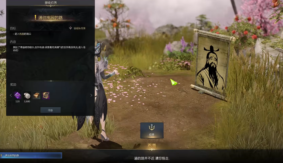 任务奖励的兑换需通过NPC千年老坛,使用饱满的桃子和武陵花的露水换取。桃子可通过击打地图上的巨型桃子或完成日常任务获取,露水则需演奏春之歌触发武陵花盛开掉落。隐藏任务寻找筋斗云三万里需通过合作任务触发,完成后可获得可交易坐骑。