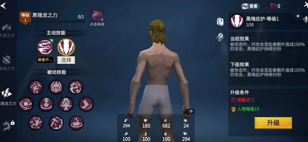 黑暗龙的表现真的挺出色的。它的基础星级虽然和火龙冰龙一样是一星,但攻击力等核心属性明显更高。更棒的是它的初始驯化值有90点,这直接影响龙在战斗中的效率,意味着它几乎不会偷懒,能持续提供高输出和辅助。它有两个核心技能,黑暗缠绕可以在玩家普通攻击时触发,造成105%倍率的范围伤害,持续20秒,清怪效率大大提高。另一个技能黑暗庇护在玩家受伤时触发,让玩家对攻击者的伤害提升100%,能持续92秒,面对BOSS时几乎可以全程覆盖,帮助快速攻坚。进阶后还能解锁更多破防技能,让它在面对高防御敌人时也能有不错的表现。