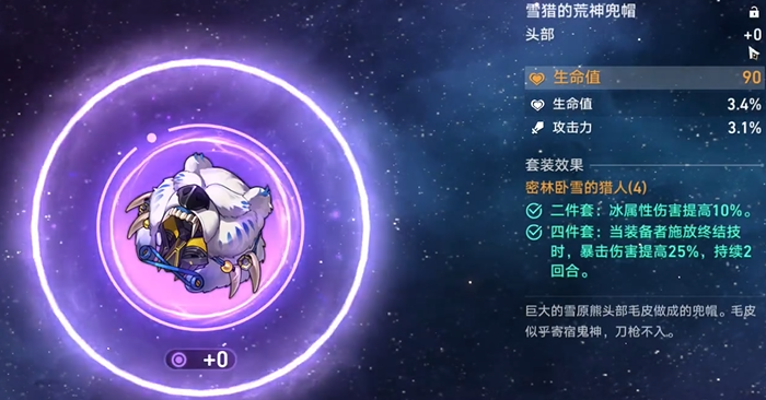 我们先来看看外圈遗器,也就是头部、手部、躯干和脚部这四个位置的套装选择。目前最被认可也最适合黑塔的毕业套装是密林卧雪的猎人四件套。这个套装的两件套效果直接提供百分之十的冰属性伤害提高,完美契合黑塔的冰伤输出。它的四件套效果则是在装备者施放终结技后,暴击伤害提高百分之二十五,持续两个回合。黑塔的终结技是她的重要爆发手段,释放后能强化后续的攻击,这个增伤效果覆盖得很好。如果你暂时刷不齐四件套,也可以用密林卧雪的猎人两件套加上野穗伴行的快枪手两件套来过渡,前者提供冰伤加成,后者提供百分之十二的攻击力提升,这样散搭成型速度比较快,也能提供不错的伤害增幅。