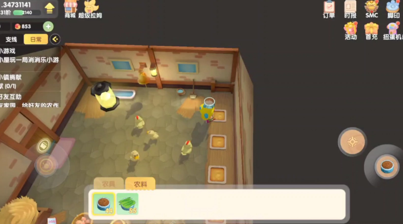 鸡棚修复完成后你就可以正式饲养家禽了,前往商店用摩尔币购买小鸡或小鸭的幼崽,成功购买后它们会直接出现在鸡棚内,接下来就需要每天照顾它们,定期添加淡水和草料,确保饮食充足,这样幼崽才会逐渐成长为成年家禽。