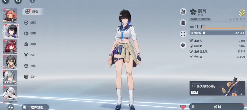 除了经典的真樱系组合,震离的搭配也有其他灵活变阵。当玩家追求极致的安逸输出和队伍容错时,治疗型辅助是不错的选择。潮音·波塞冬在这方面表现突出,她不仅能提供可观的全队治疗,保障震离在战场的生存,其技能附带的回能效果与机制值获取效率提升,能完美契合震离对技能释放频率的需求,让输出循环更加顺畅。另一种思路是组建纯雷队以追求属性伤害最大化,例如搭配觅影·国常立作为副C,她的技能可以降低敌人雷抗,从而放大震离的雷电伤害,实现伤害层面的互补。