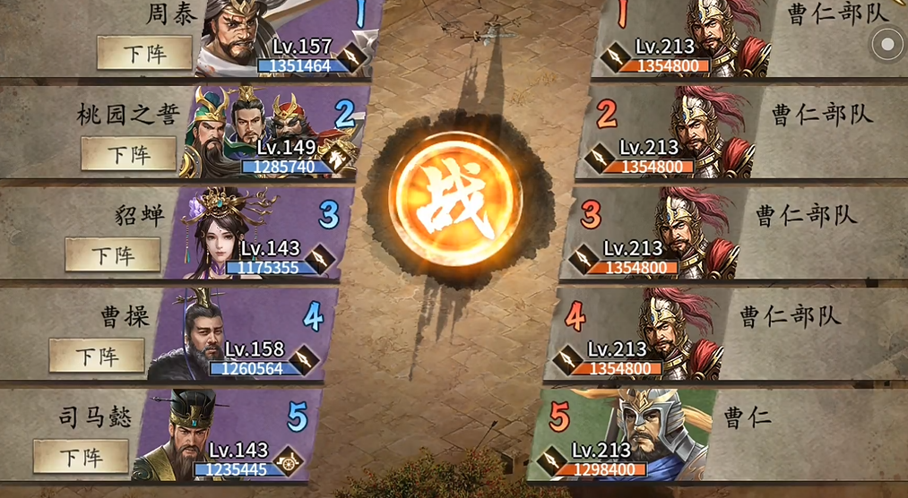 攻克213曹仁副本,首先需要确保基础的配置达标,神兵建议达到180级珍宝最好能凑齐8件如果拥有二车或残三车会更稳妥,御宝方面红甲和绿符能够提升生存能力,阵法选择如水域和方圆阵可有效应对不同战况。由于副本中敌方每个将领都携带五排兵力且曹仁具有格挡特性,对装备和等级有一定要求,缺乏这些条件可能需要更多次尝试才能找到突破口。在武将选择上,推荐貂蝉、黄月英、曹操、孟获和甘宁这套阵容,其中黄月英若未觉醒则需依赖二车护盾来弥补血量的不足。
