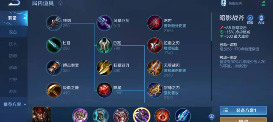 典韦可以走打野位置,也可以走对抗路,出装上会略有不同。如果你是玩打野典韦,出门买小打野刀,然后优先合成追击刀锋来提升刷野的速度和经验获取。鞋子方面,绝大多数情况都推荐抵抗之靴,因为它能增加韧性,减少你被敌人控制的时间,对于典韦这种怕被风筝的英雄来说至关重要。接下来的核心装备顺序一般是暗影战斧、反伤刺甲和宗师之力。暗影战斧提供攻击、冷却缩减和穿透,是战士的万能输出装。反伤刺甲简直是典韦的灵魂装备,它不仅提供高额的物理防御,其被动反弹的伤害还能触发典韦大招附带的真实伤害效果,让站撸对拼的典韦如虎添翼。宗师之力则在使用技能后强化下一次普攻,配合典韦的技能连招能打出爆炸伤害。最后一件装备可以根据局势选择无尽战刃进一步放大暴击伤害,或者在生存压力大时换成名刀·司命或贤者的庇护来保命。