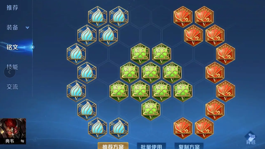 对于新手朋友来说,一套通用的暴击流铭文就非常够用,能让你在游戏前中期就有不错的伤害。红色铭文首选祸源,可以直接增加暴击率,让你的斧头砍下去更有机会出暴击。蓝色铭文带隐匿,这个铭文能增加物理攻击和移动速度,攻击力让典韦的技能和普攻更疼,移速加成则能稍微弥补他腿短的缺点,追人和逃命都更灵活一些。绿色铭文就无脑带鹰眼,它提供的物理攻击和物理穿透属性,能让你的伤害打在对面前排坦克身上也不至于像刮痧。这套祸源、隐匿、鹰眼的组合能提供高额的物理攻击、暴击率和物理穿透,配合典韦被动叠加起来的攻击力,到了中后期爆发能力非常恐怖。