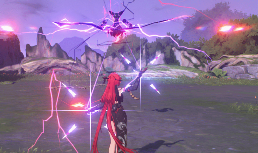 吟霖的核心玩法围绕其独特的标记系统展开,通过常态攻击、共鸣技能和大招给敌人附加普通标记,积累审判值后通过重击将标记升级为高级标记。高级标记在吟霖处于后台时依然生效,当队友攻击带标记的敌人时,吟霖会协同进行雷击伤害,这使得她在切换出场后能持续贡献输出。这种机制强调连续攻击和标记管理,玩家需要合理使用技能来维持标记的生效,从而最大化伤害收益,尤其在面对群体敌人时效果显著。