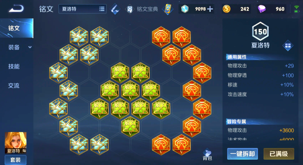 若选择打野位置出装思路需侧重清野效率与节奏带动。起始装备为狩猎宽刃,随后合成抵抗之靴和贪婪之噬以提升打野速度与攻击力。核心输出装暗影战斧依旧不可或缺,之后可选择极寒风暴来大幅缩短技能冷却,或选择宗师之力来强化爆发伤害。防御装方面,永夜守护能有效应对法术爆发。这套出装让夏洛特在快速发育的同时,拥有极强的Gank能力,成为团队的节奏发动机。铭文搭配上夏洛特的主流选择是百穿铭文,即10个异变、10个鹰眼,以提供高额的物理穿透。蓝色铭文通常选择10个隐匿,增加物理攻击和移速,优化支援与追击手感;也有搭配10个狩猎或部分调和以提升攻速或前期续航的方案。技能加点方面,建议主升二技能前进喷泉,副升一技能迅光三角剑,有大招点大招。