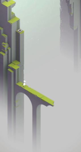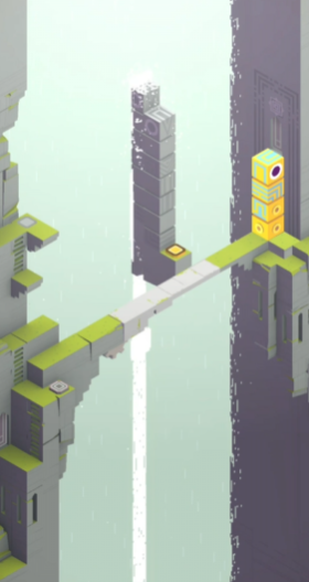 继续前进艾达需要爬上一段楼梯并踩下新的开关这会使场景发生进一步变化。要将图腾移动到指定的灰色平台上,平台会随之下降,让艾达站上去。一旦艾达站稳,就移开图腾,平台便会带着艾达上升。当平台停止上升并与图腾处于同一高度时,让艾达从平台走到图腾上。操作图腾竖立移动,让艾达得以从其顶部走下来,最终进入场景右侧的一扇门内。这个过程需要巧妙地利用图腾作为可移动的桥梁和升降梯,是突破地形障碍的关键。