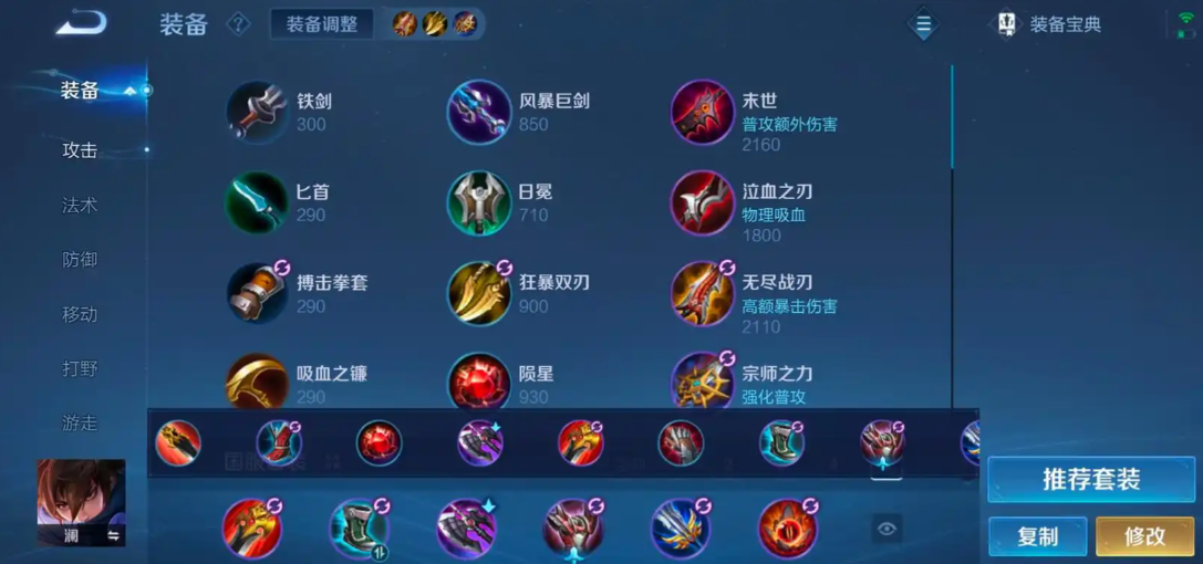 完整的减CD出装顺序通常以打野刀和鞋子起步后续逐步添加暗影战斧、苍穹和破军等装备。初期优先购买小打野刀和冷静之靴,然后升级为高级打野刀并合成暗影战斧,中期补上苍穹以进一步减少冷却时间和增强生存能力,后期根据战局选择破军来强化收割效果或碎星锤应对坦克英雄,这套出装能帮助澜在游戏中后期达到接近40%的冷却缩减上限。