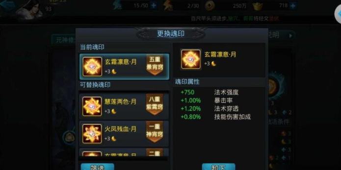 获取并激活魂印后,其核心价值在于镶嵌至元神系统的灵孔之中。每位英雄的元神拥有多个灵窍,每个灵窍内包含三个灵孔,可以镶嵌魂印。镶嵌蓝色及以上品质的魂印,不仅能为英雄提供直接的属性加成,还能为灵窍积累日芒、月华、星辉三种不同类型的灵值。当灵窍内积累的灵值达到特定条件时,便能激活该灵窍附带的隐藏特技,从而获得更强大的额外战斗加成。在镶嵌魂印时,需要考虑魂印提供的属性是否契合英雄定位,以及其贡献的灵值类型,以更有效率地激活强力的灵窍特技。