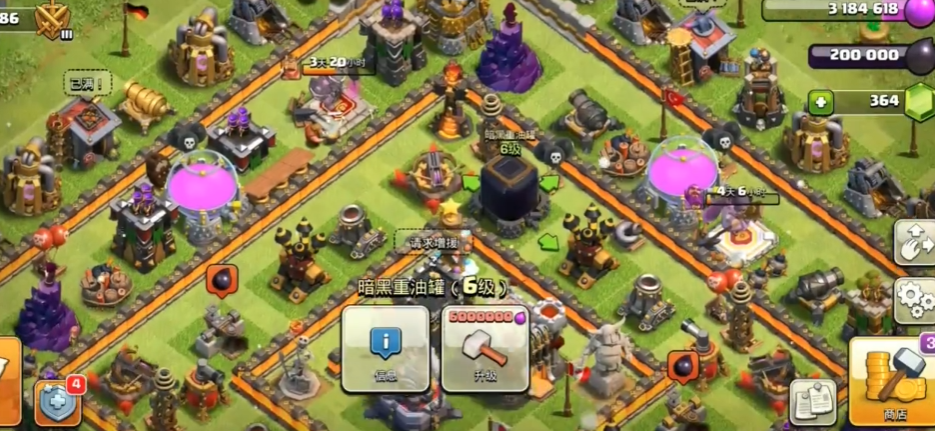 最基础且重要的资源建筑是金矿、圣水收集器和暗黑重油钻井。它们的位置就在你的村庄地图上,你需要建造并升级它们来持续产出相应资源。有一种被称为隐形矿井的机制,那就是清除村庄内自然生长的树木、石头、灌木丛等障碍物。这些障碍物被移除时有概率获得宝石,这是一种循环再生的获取珍贵宝石的途径,虽然不稳定,但长期来看是免费宝石的重要来源之一。