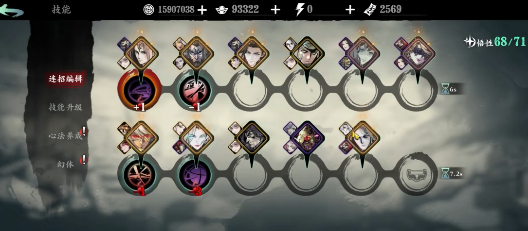 当心法系统解锁之后,你就能在技能页面里看到一个全新的心法搭配选项了。这里可是提升你战斗力的核心地带,但心法可不是像穿装备那样简单装上就行。它需要被镶嵌到你预先设置好的技能链的每一个技能格子上才能生效。每一种心法都会给你对应的技能带来独特的效果,比如直接增加技能的伤害数字,或者缩短技能再次使用的等待时间,厉害的甚至能给技能附加上诸如眩晕、中毒这类特殊效果。这里有个很重要的限制叫悟性值,你可以把它理解为你当前能驾驭心法力量的总容量。不同品质的心法消耗的悟性值差别很大,高级的橙色心法通常要消耗7点,而紫色心法则消耗4点。好消息是,这个悟性值的上限会你角色等级的提升而增加,所以前期别一股脑全塞上高级心法导致容量不够,合理分配低级和高级心法,才能让你的技能链在前期就发挥出不错的效果。