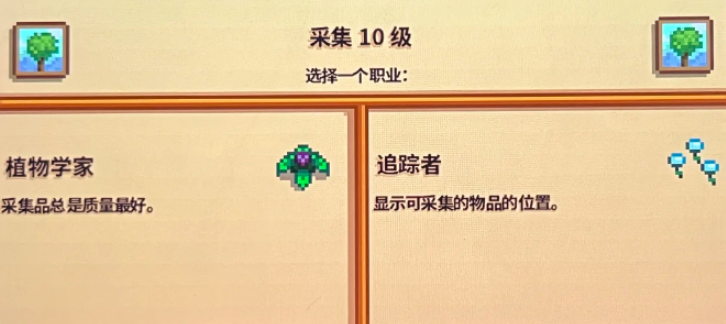 当觅食技能达到十级时,玩家将面临一个影响后续游戏体验的重要抉择,这个选择并非独立存在,而是紧密依赖于你在五级时所做的职业分支选择。如果你在五级时选择了收集者专精,那么十级时你将在植物学家与追踪者这两个分支中进行选择;反之,若五级选择了护林人路线,则十级选项会变为伐木工人与萃取者,这要求玩家必须提前规划好自己的发展路线。