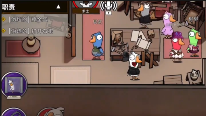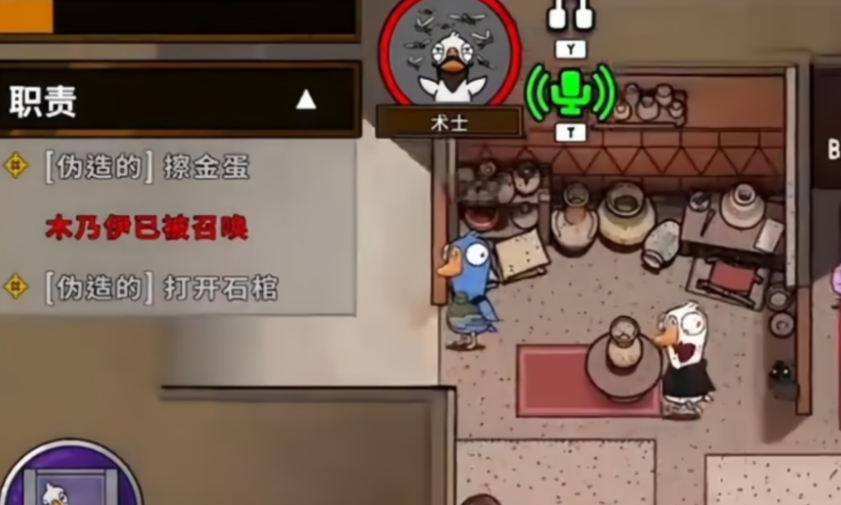 术士是鸭子阵营的特殊角色,其核心玩法在于释放召唤蝗虫群技能进行范围性攻击。该角色初始状态下与普通鸭子无异,不具备特殊能力,只能进行常规的刀人操作,其核心技能并非开局即可使用。术士的定位是团队型输出位,其技能召唤蝗虫群可以对指定房间内的所有玩家造成无差别、持续性的范围伤害,有潜力一次性击杀多名玩家,从而制造混乱并大幅削减好人阵营人数。这个技能的发挥高度依赖团队配合与时机把控,单独行动很难达成有效击杀,属于战术性较强的控场型角色。