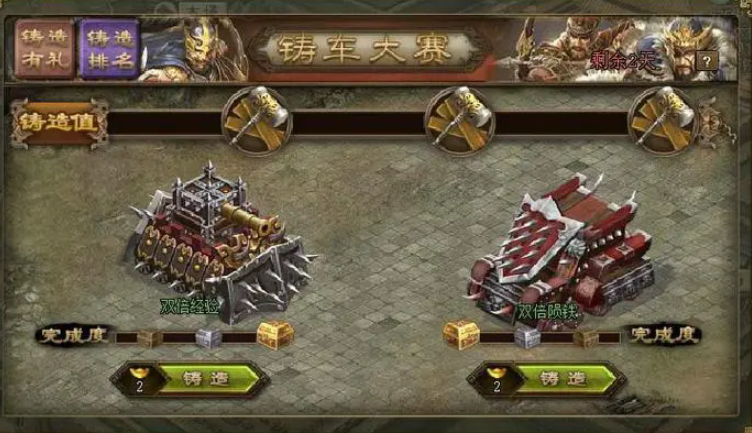 陨铁可以通过攻防任务、国战奖励、祭祀系统或者资源宝箱获取,攒够了一定数量就能打造战车。图纸的获取途径更多样,比如远征胜利、抓捕间谍、改造城池、军需处兑换、镇守襄阳活动或者矿区挖掘。通用零件每个需要消耗3520陨铁和50图纸,专属零件的要求可能更高。建议优先参与日常活动,比如夜袭荆州或草船借箭,这些活动经常掉落陨铁和图纸,比单纯氪金更划算。
