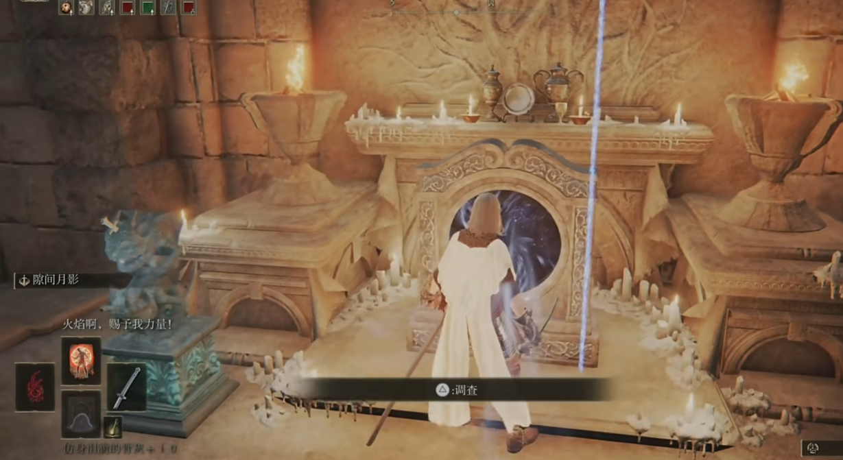 四钟楼的钥匙通常藏在附近,如果找不到可以多探索钟楼底层或击杀小怪。传送后会发现天空城环境破败,名为逐渐崩毁的法姆·亚兹拉,怪物强度较高,建议先解锁赐福点方便后续传送。这里的主要资源包括古龙岩锻造石和大朵墓地铃兰,能强化武器和骨灰。