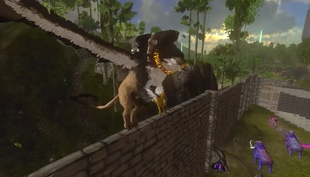 狮鹫昏迷后需立即喂食,其食物偏好依次为异特龙蛋饲料、优质生肉和普通生肉。驯服期间需持续监控眩晕值,及时补充黑果子或麻醉药以维持昏迷状态。驯服进度条满格后,需装备鞍具方可骑乘。部分情况下需通过特殊方式获取狮鹫尊重,如佩戴黄金王冠或使用特定表情交互,否则驯服可能失败。完成驯服后,狮鹫无需鞍具即可直接骑乘,这是其区别于其他飞行生物的特性。俯冲攻击可造成多倍伤害,操作时需将视角朝下加速俯冲,临近地面时调整翅膀角度横扫目标。滑翔功能则能实现长距离高速移动,需在俯冲获得最大速度后拉回视角触发。