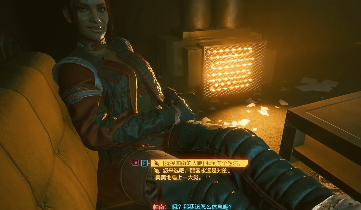 后续支线举手之劳需在控制塔顶选择情感选项站在窗边和我很想你,并主动触碰她的手以强化关系。最终在公路之歌任务中,完成坦克训练后选择带有亲吻图标的对话让帕南抚摸你,即可达成浪漫结局。整个流程中,所有对话需始终维护帕南的立场,避免质疑或否定她的决定,同时把握每一次肢体接触的机会以提升亲密度。