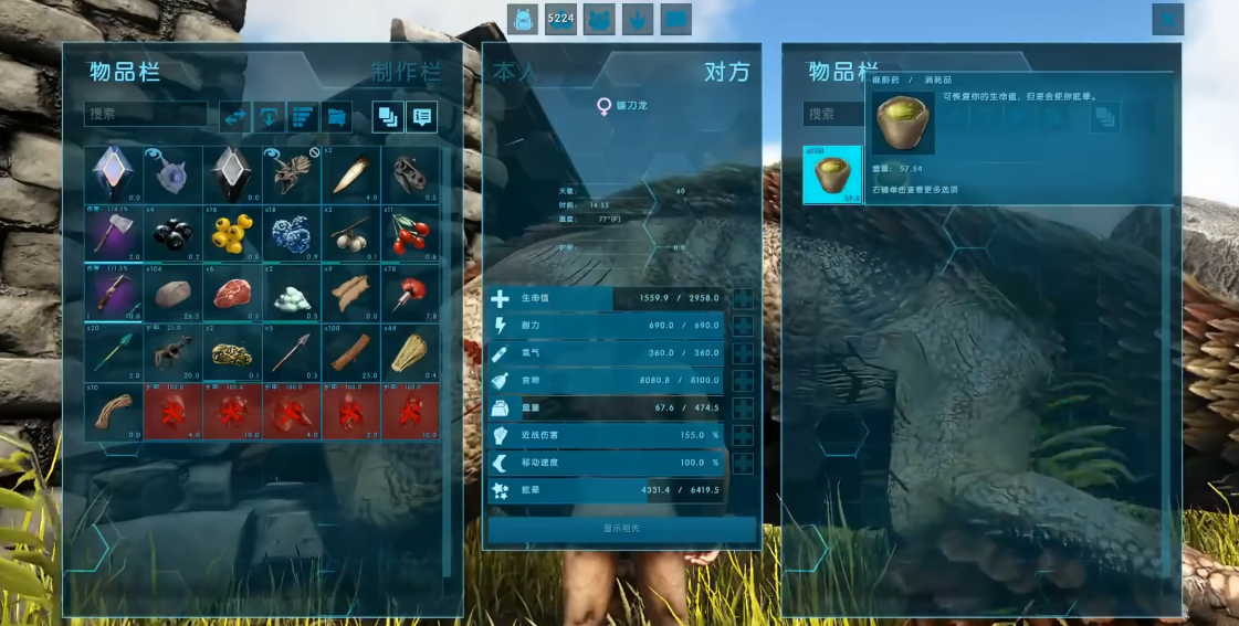 鞍具制作是驯服后的关键步骤,69级解锁的镰刀龙鞍需要相应材料提前准备。该生物分布集中于内陆森林与平原交界处,蓝方舟附近的巨型骸骨区及雪山入口为常见刷新点。驯服成功后的镰刀龙具备全资源采集优势,左键攻击可获取肉类、木材、兽皮等基础物资,右键专精纤维采集,C键则针对浆果类资源。属性加点建议优先提升耐力和负重,增强其长途运输与持续作业能力。