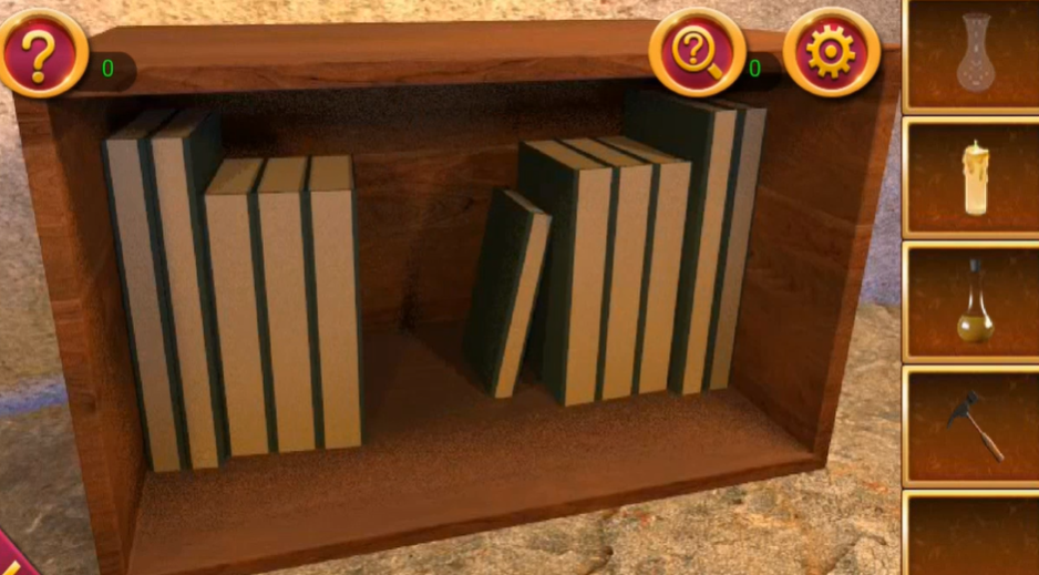 玩家需要收集多个关键道具并按照特定顺序操作才能成功逃脱。首先拾取场景中明显的物品,包括台上的蜡烛和空瓶子,以及书柜里的锤子。使用锤子砸开左侧的瓶子可以取得红色液体瓶。台下左侧有一个木箱,按照顺时针方向依次点击机关,能够获得蓝色液体瓶。这些道具是解开后续谜题的基础。