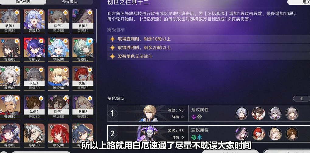 忘却之庭是崩坏:星穹铁道中检验玩家练度与策略能力的高难度副本,分为回忆和混沌回忆两部分。回忆为一次性通关关卡,提供基础奖励;混沌回忆则周期性更新,挑战难度更高且要求两支队伍分上下半场作战。队伍搭配需优先考虑敌人弱点属性与角色功能互补。混沌回忆从第11层开始需分两队,每队需包含输出、辅助、生存位角色,生存压力较大时可选择双奶或盾奶组合。输出角色建议选择高爆发或持续伤害型,如希露瓦、丹恒等;辅助位优先提供增益或控制效果,如停云的充能或布洛妮娅的拉条;生存位推荐娜塔莎、杰帕德等具备治疗或护盾能力的角色。角色练度要求较高,主C需确保攻击力达标,生存位防御或生命值需满足抗压需求。