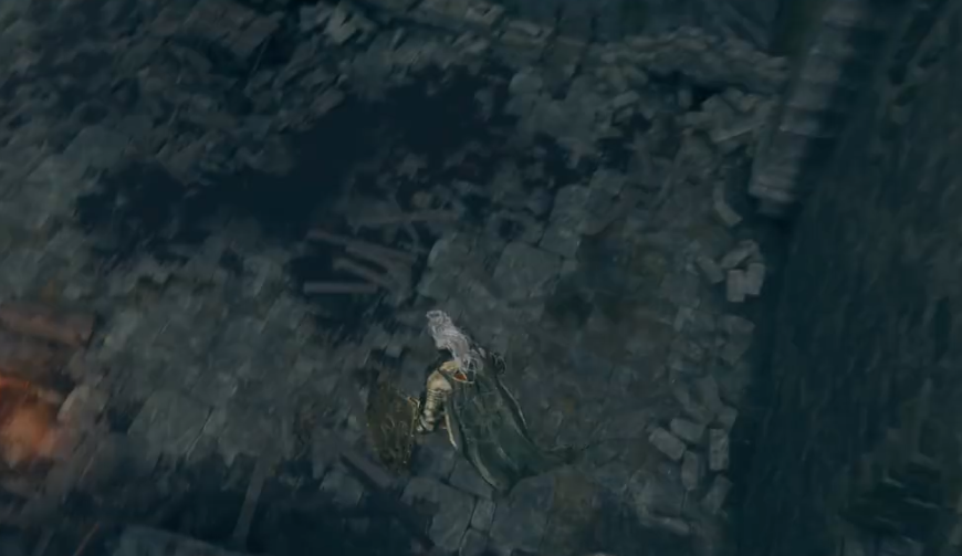 海岸区域的赐福点需通过塔楼迂回抵达。从城墙顶部缺口跳下后,沿梯子下降至塔楼中层,穿过破损房顶进入内部房间。此处赐福点靠近监牢入口,激活后可作为探索海岸线的起点。继续向下至海滩,击败巡逻的巨蟹后,第三个赐福点位于监牢桥墩旁的石阶上,周围有失色锻造石等资源可收集。