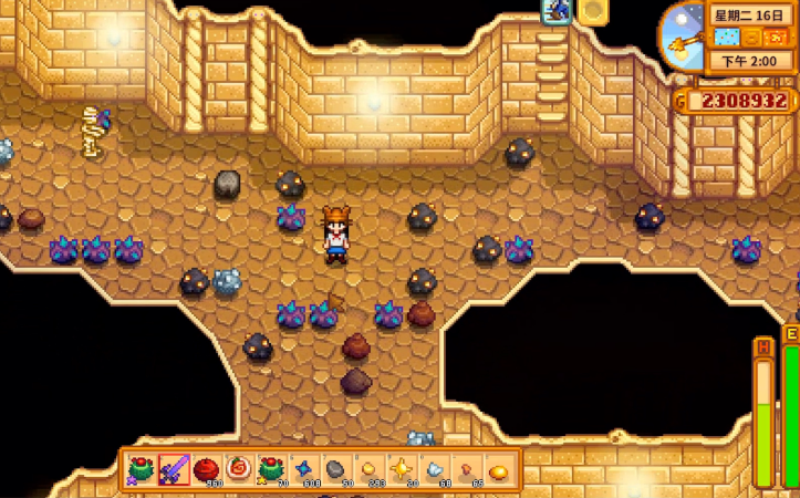 初期建议尽快解锁矿洞电梯,每日推进至新楼层以获取铜、铁等资源。21层、41层和81层分别对应铜、铁、金矿富集区,反复刷取效率更高。熔炼后的金属锭可直接出售或用于工具升级,铱矿则需通过沙漠矿洞史莱姆层获取。矿洞中煤炭精灵掉落煤炭的概率较高,这是熔炼和酿造必备资源。