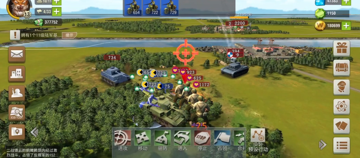 夜间或雾天进攻能削弱炮塔命中率,丛林和废墟则是天然的掩体。如果炮塔周围有海军单位驻防,务必先用轰炸机清理,否则两栖登陆会吃大亏。山地和城市地形可以卡视野迂回,但要注意炮塔可能有交叉火力网。优先占领带五级塔的资源点能大幅减少伤亡,这类据点往往能提供射程加成或视野优势。
